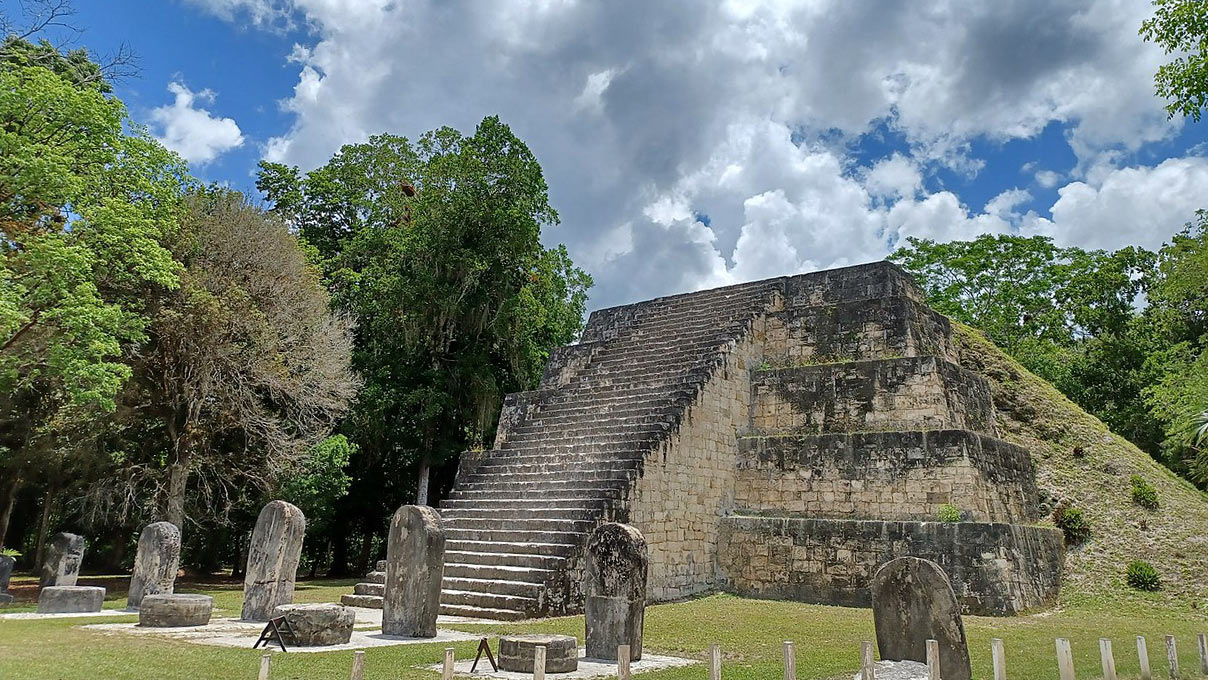 マヤで最も有名な遺跡のひとつであるティカルは、鬱蒼とした熱帯雨林の中に印象的な遺跡が点在している。見どころは、そびえ立つ第1神殿(大ジャガーの神殿)と第2神殿、大広場、仮面の神殿など。