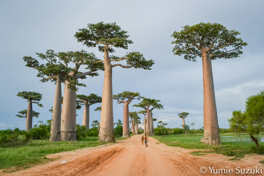 キツネザルがマダガスカルの象徴的な動物であるように、バオバブの並木道もまたマダガスカルの代表的なイメージのひとつである。バオバブとは「森の母」を意味するマダガスカルの言葉で、樹齢800年、高さ約30メートル、長い1本の木にふさわしい名前だ。この自然の景観は、マダガスカルで最も美しい道と呼ばれている。約260メートルの道に沿って、20~25本の木が並んでいる。これらの木々は、大量伐採によって失われた豊かで多様な森の一部である。