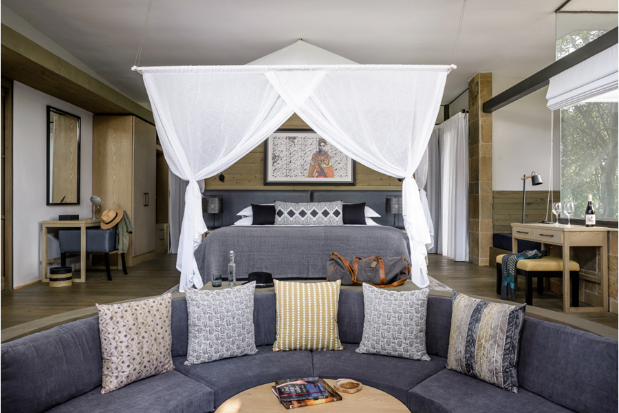 "広々とした美しい内装の各スイートからは、マラ川の素晴らしい眺めをお楽しみいただけます。