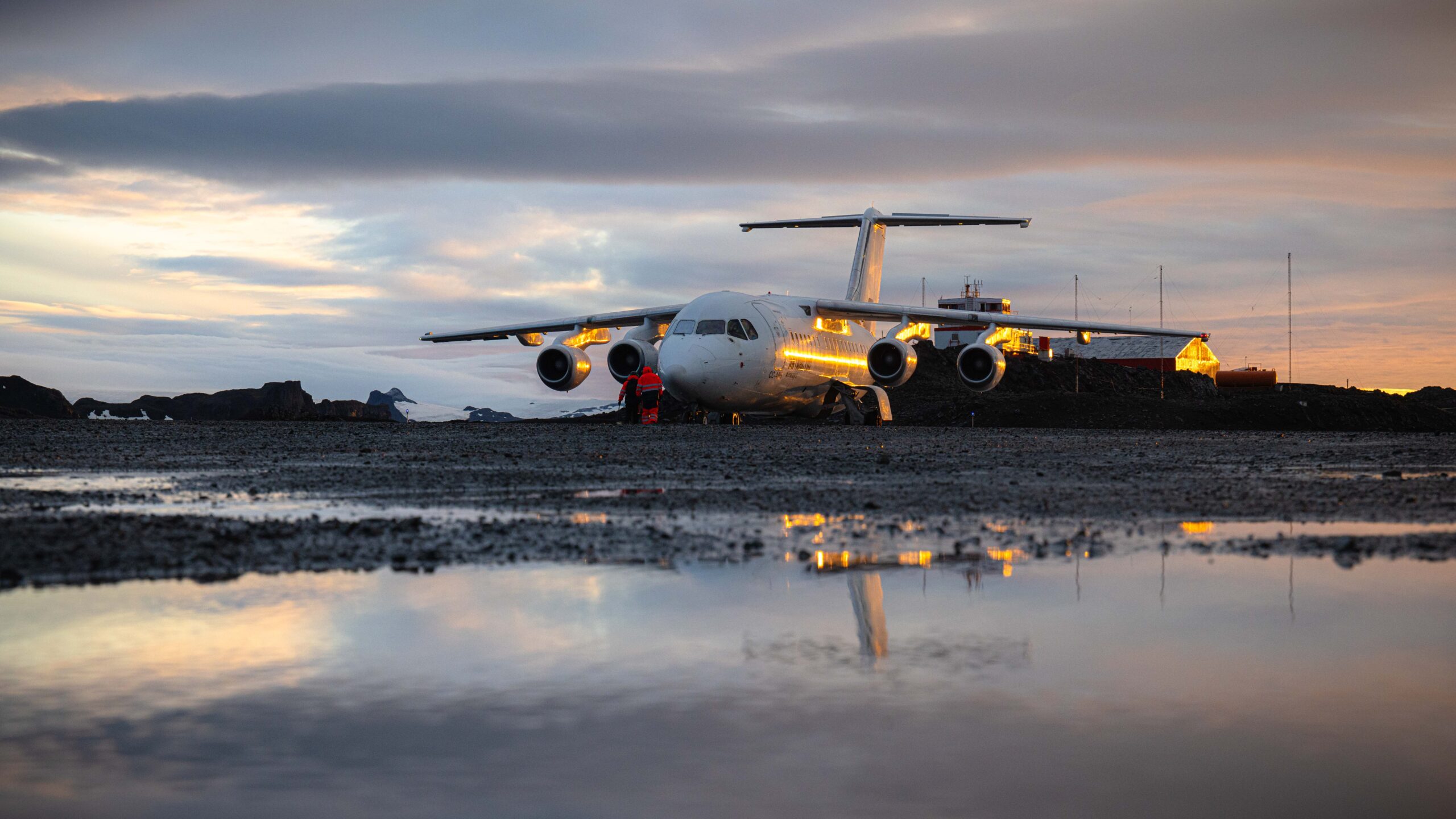 チリのプンタ・アレーナスからわずか2時間足らずのフライトで、サウスシェトランド諸島のキングジョージ島へ向かい、南極探検がいよいよ始まります。飛行機を降りた瞬間に感じる、澄んだ冷たい南極の空気が旅の始まりを告げます。