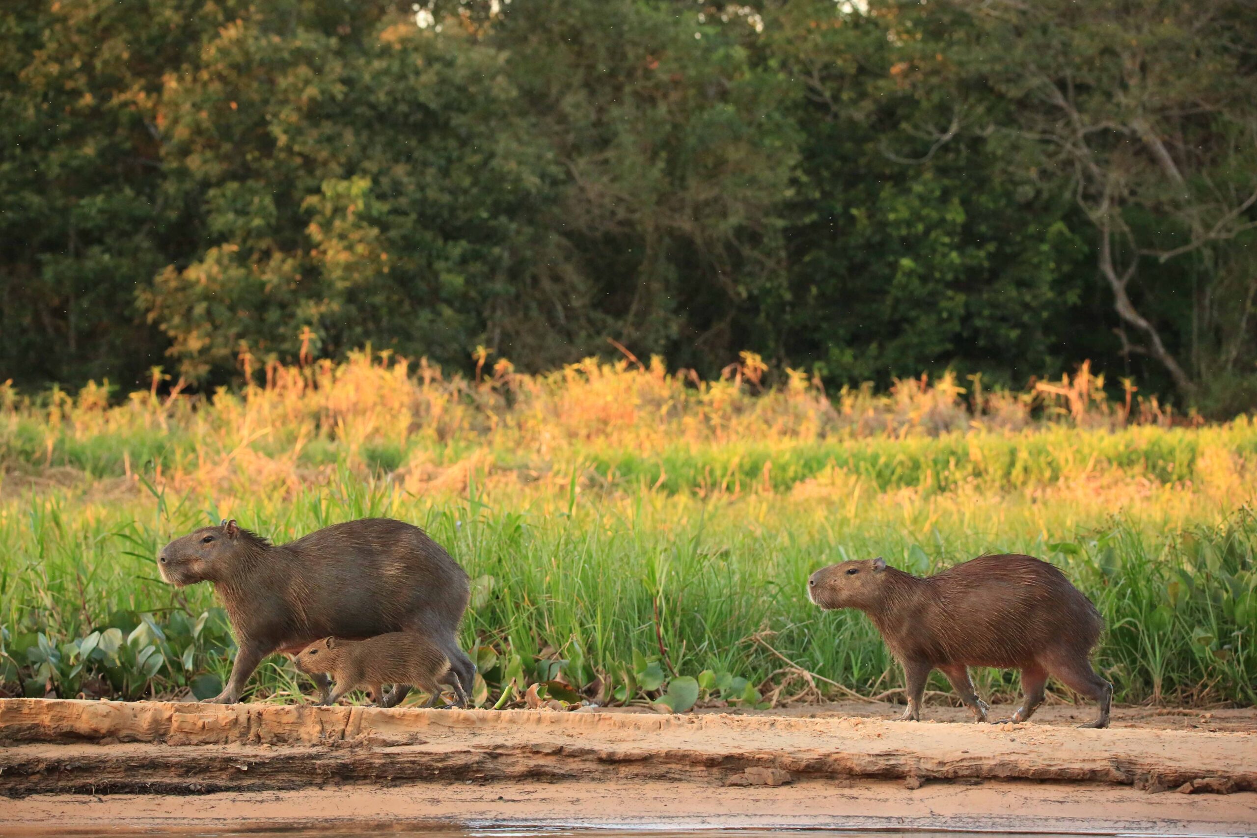 午後はモンキー・タワーへのトレッキング。高さ25メートルのこのタワーからは素晴らしい景色が望め、梢にホエザルに出会えるかもしれない。パンタナールに沈む夕日を楽しんだら、ロッジに戻って夕食。